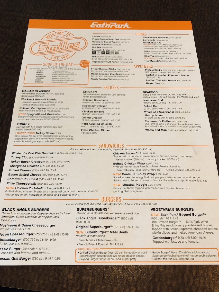 Introducing the menu at Eat'n Park, a beloved dining spot located in Gibsonia, PA, you’ll find a delightful array of comfort food that resonates with both locals and visitors. Here, breakfast transcends the ordinary, featuring highlights like the indulgent Bananas Foster French Toast, which leaves a lasting impression with its sweet, rich flavor profile.